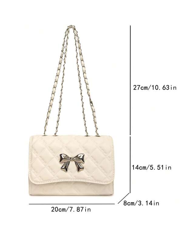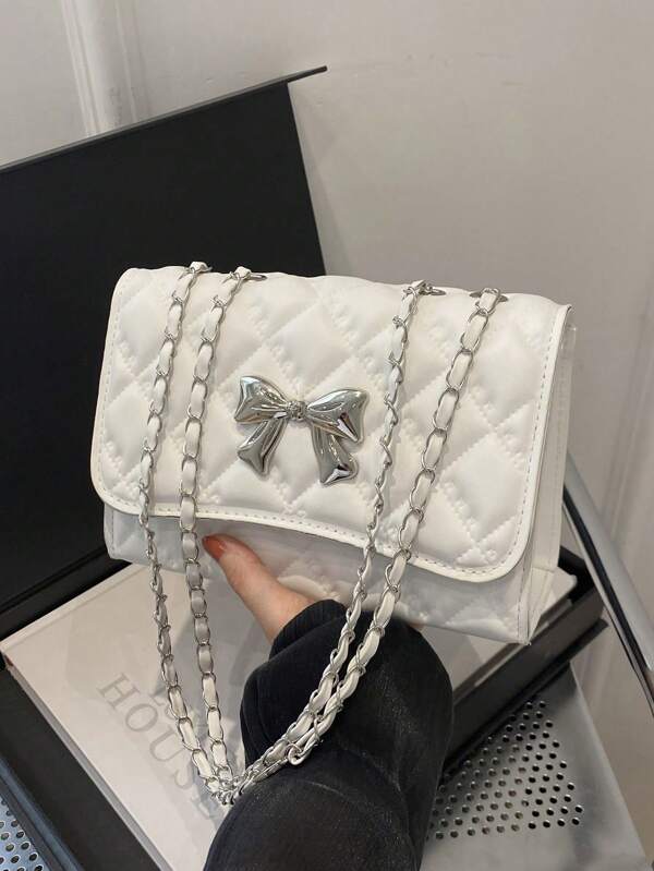 メタリックリボン キルティングショルダーバッグ – 純白の煌き